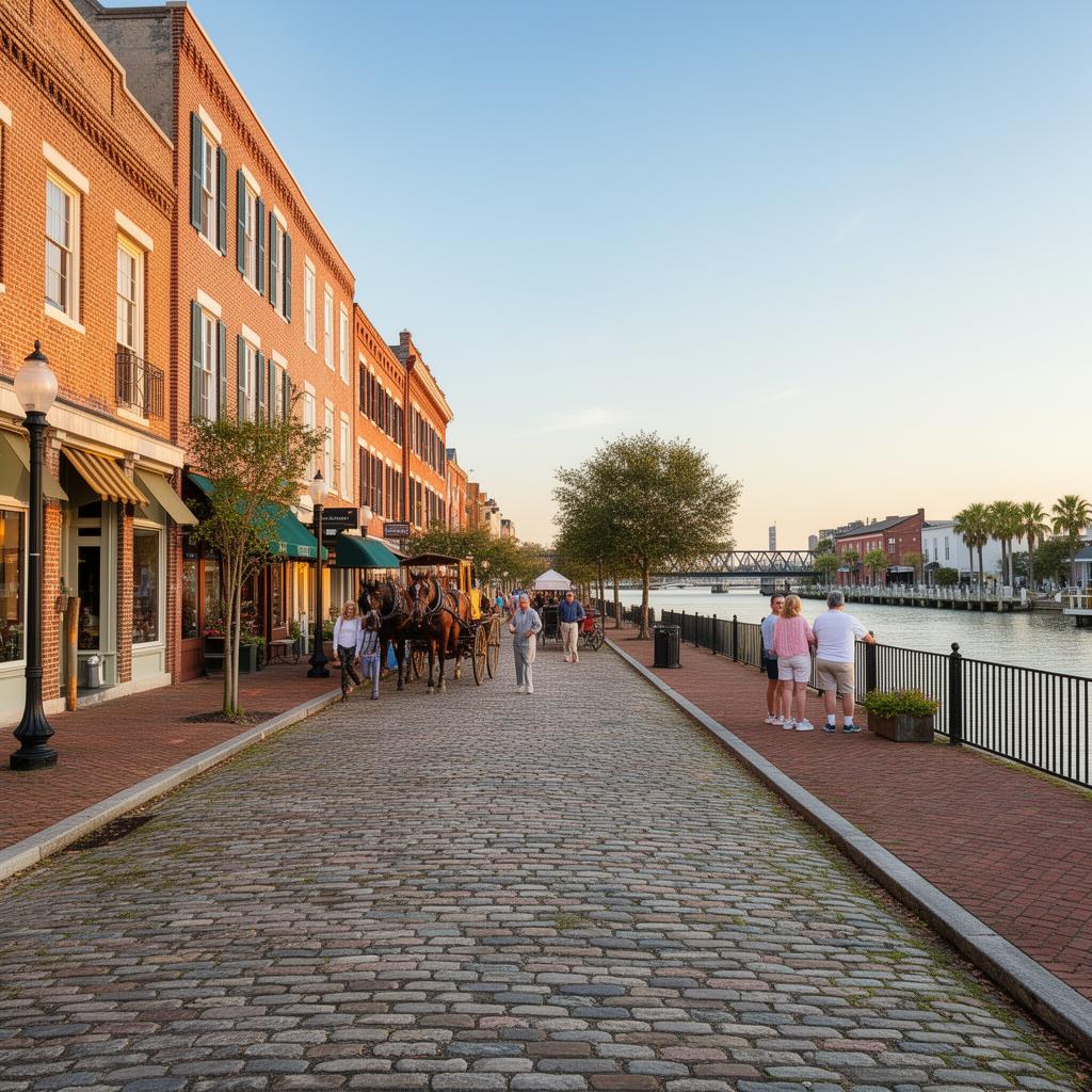 Charming historic district with walkable streets, riverfront dining, and unique architecture.